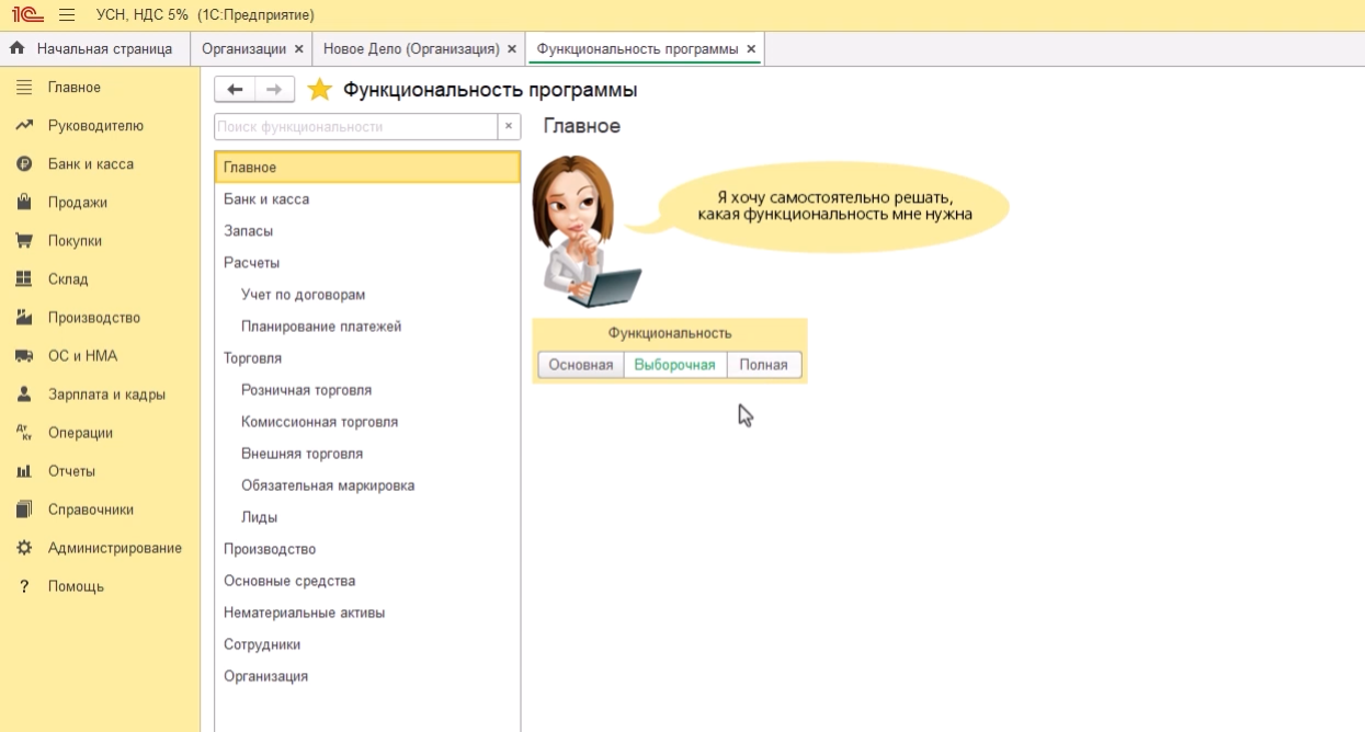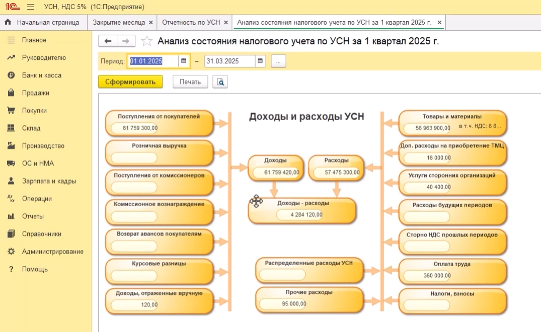 • Настраивать учётную политику под УСН;