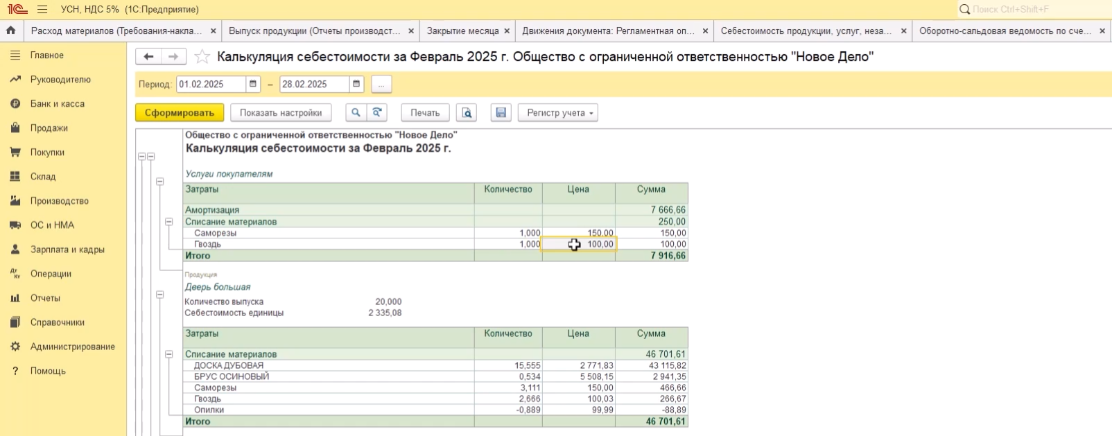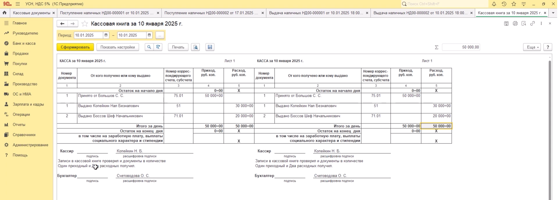 • Закрытие периода, формирование КУДиР
